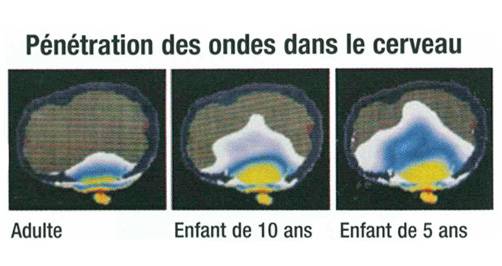 J'avais "piqué" une image sur le site Bio à la une qui était censée montrer la pénétration des ondes d'un mobile dans le cerveau [depuis, l'article qui annonçait leur nuisance comme confirmée a été supprimé - note de 2025]